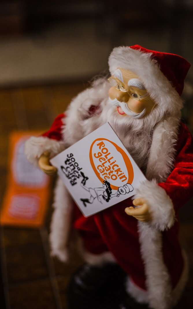 Rollickin Gelato has two fun festive locations in the centre of Christchurch. 98 Cashel Street and 35 New Regent Street. Open for Christmas fun 11am-10pm Sunday to Thursday and later 11am-11pm on Friday and Saturday nites!