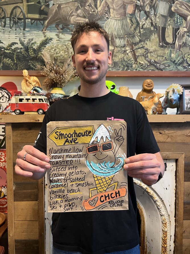 Wow! All the flavour ideas and names came in from you...so many awesome ones to choose from. One gelato theme came through loud and clear. A flavour that encapsulated our ski fields, our Canterbury plains and our beautiful beaches. Spring ski in the morning and surf in the afternoon. How many cities can boast that!