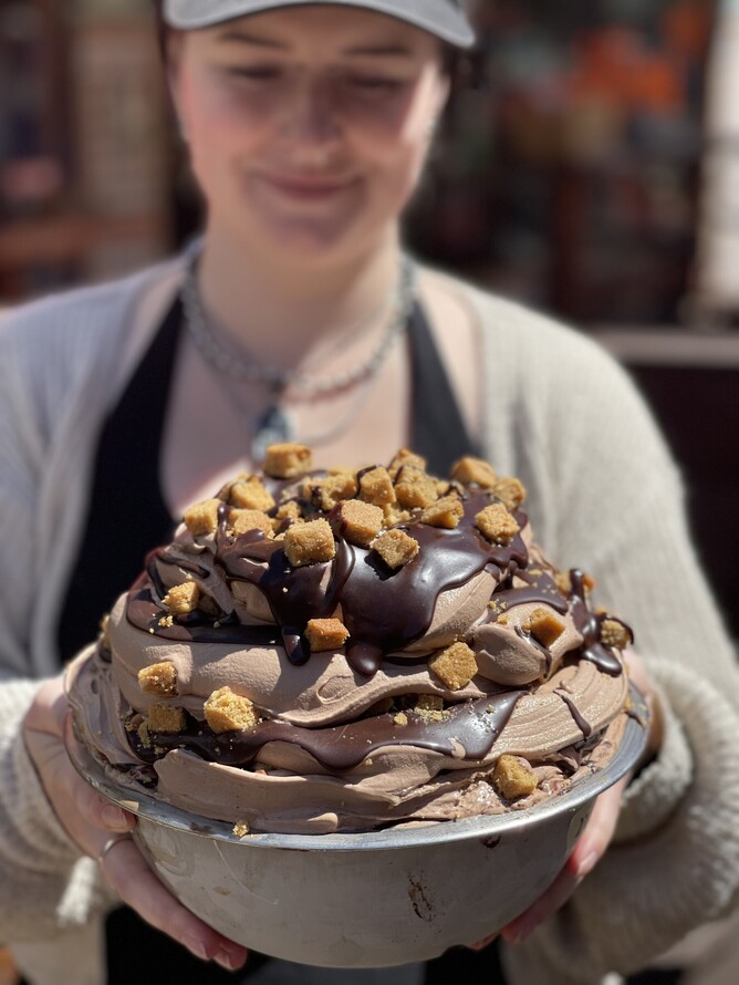 PEANUT PANTS 🥜👖 Absurdly delicious Milk Chocolate gelato, swirls of house-made cheeky Choc fudge sauce & crumbled Peanut Butter Cookies. I’m nuts about you!