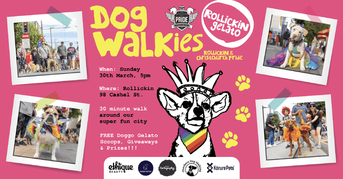 Christchurch Pride & Rollickin Gelato’s Dog Walk is a fun 30-minute stroll around the CBD.