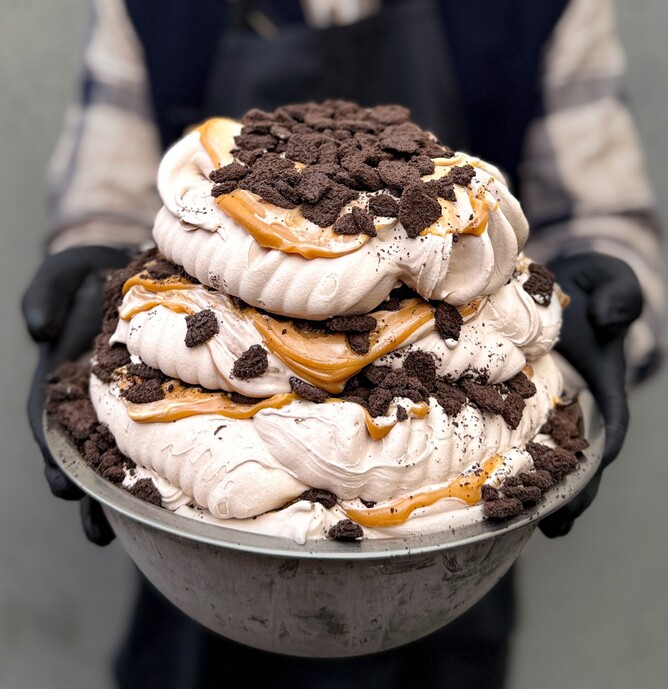 Oreo & cream gelato - layered with thick caramel and chunky Oreo bits.