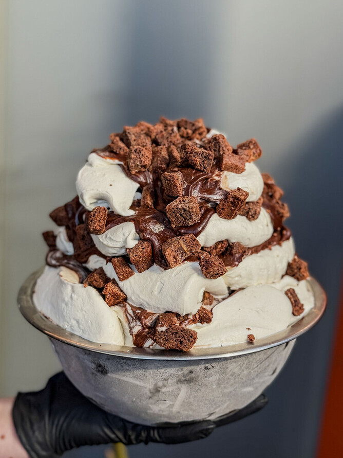 We built a gelato as solid as he is: real blitzed bananas, house-made choc fudge & chunky brownie bits.