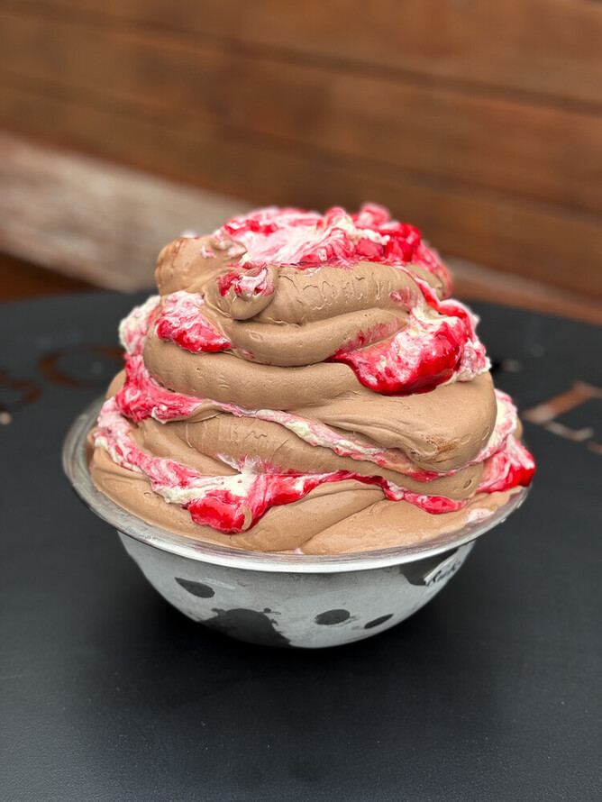 Rich dark chocolate gelato, fluffy whipped-cream folds, and cherry-berry ripples 🍫🍒✨