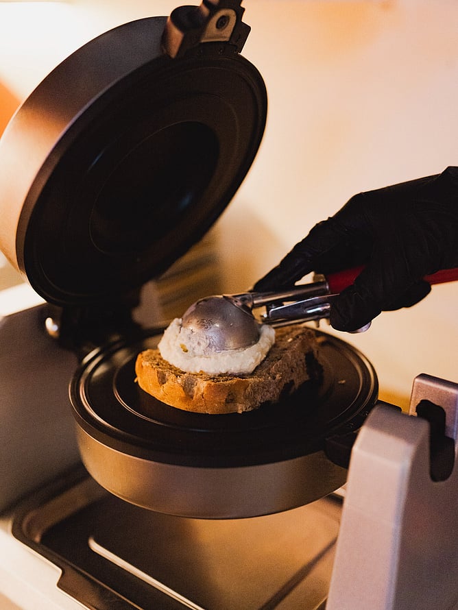 The crew are deliciously toasting Hot Cross Buns with your pick of gelato inside. Check out our super special gelato toasting machine. OMG! It's Easter dessert heaven. You can pick from a delicious CHOCOLATE Hot Cross bun or the old classic FRUITY SPICE. I love the VEGAN Fruity Spice teamed with a scoop of Hokey Pokey gelato. Oh Yes, we've got you covered Vegans for Easter Hot Cross bunning.