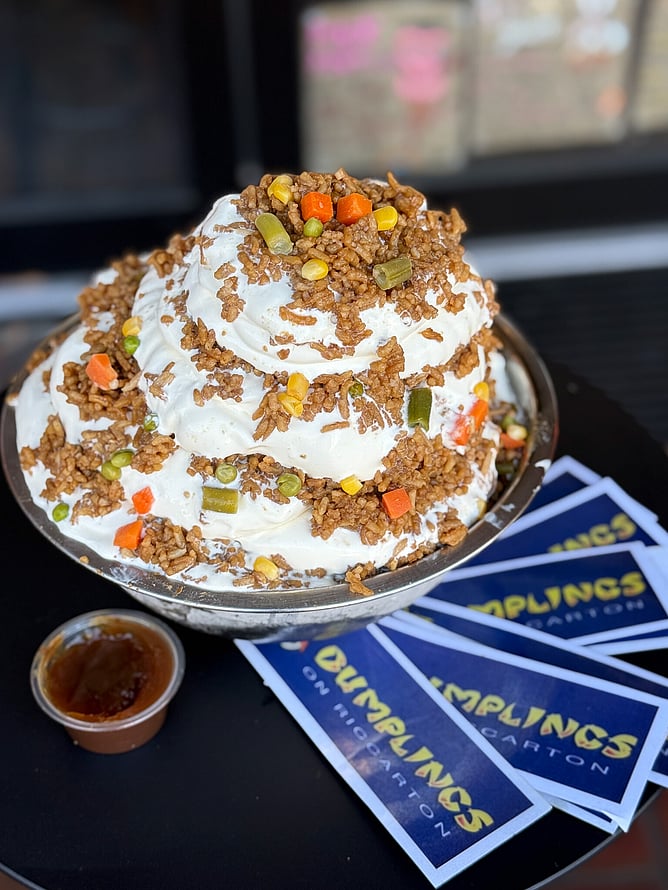 The iconic $2 rice, folded through a creamy vanilla base, absolutely drenched in THE secret gravy - made from pork and chicken juices, boosted with soy, garlic, and salt.