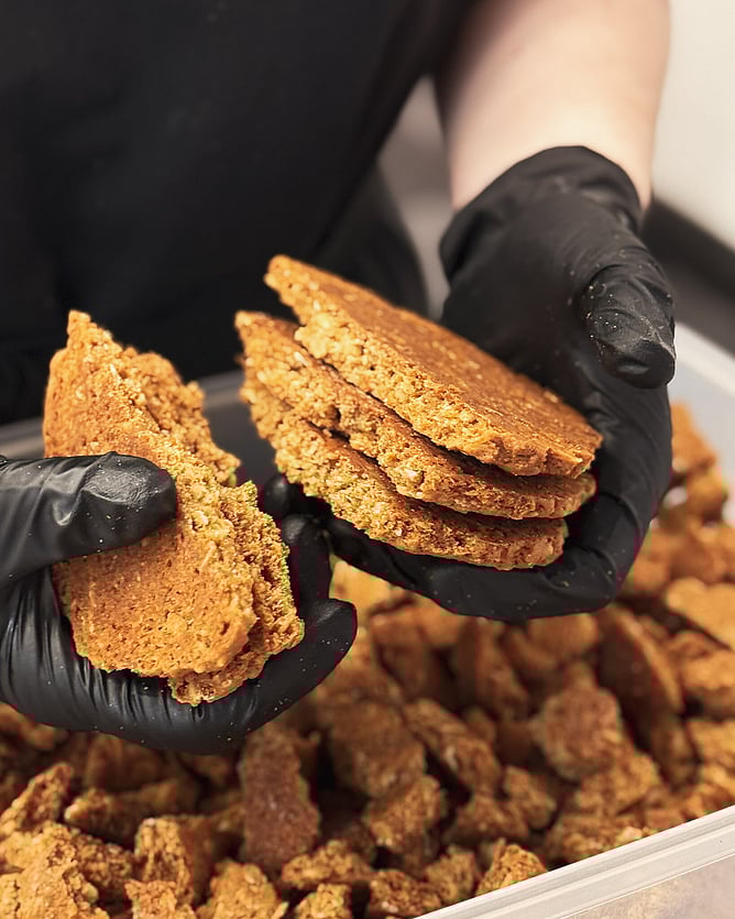 The Rollickin Gelato Chefs then kick into action smashing up the ANZAC biscuits to layer into creamy Rollickin Golden Syrup Gelato, with more layers of gooey Caramel sauciness.