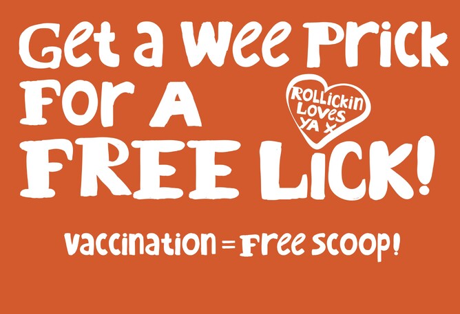 If you've decided to vaccinate... lets do it this Saturday, simply show us your Saturday Vaccination Card & you'll get a FREE Rollickin SCOOP.