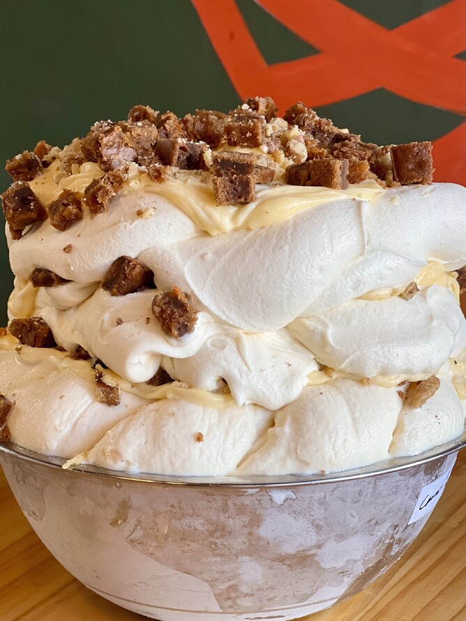 Yes! You had me at Carrot Cake! Churning organic milk, carrots and caramel into the creamiest gelato. With layers of home baked carrot cake and ripples of cream cheese icing and lemon curd sauce and walnuts! I’m just a rabbit who loves Carrot cake. See you soon for some free tastes of our latest ice cream creations in Christchurch.
