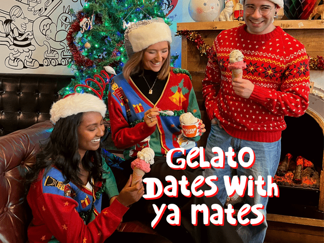 Bring your fam, best friends, work mates, badminton team, knitting club into a Rollickin Gelato Cafe for a good ol' festive catch-up.