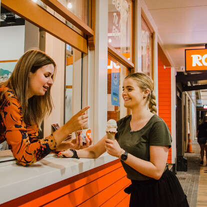 Rollickin Gelato Café, 98 Cashel Street is the biggest of our two cafes and stays open late to satisfy your post dinner cravings.