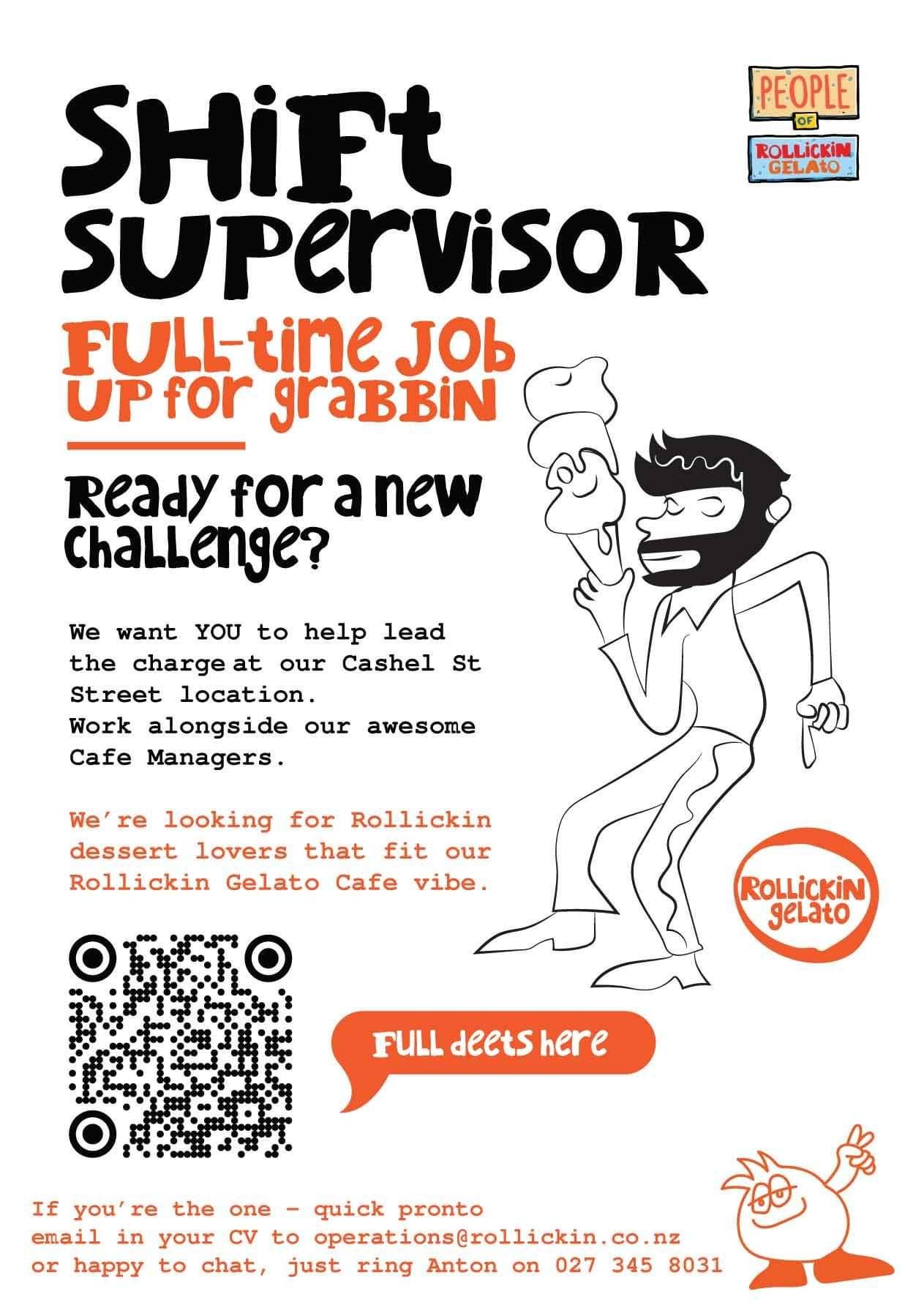 If you really love people and enjoy a good banter with our cool customers. Learn to scoop like a Rollickin pro, explain our forever changing delicious gelato flavours, rattle off all the dietary deets, plate-up our desserts, master our till, jump to action with café open & close-up, and yes, take your turn at washin the dishes!