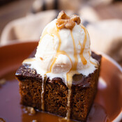 Treat yourself to a Sticky Date Pudding that’s moreishly datey & moisty! Add your favourite Rollickin melting scoop, drizzle gooey caramel sauceyness all on top & sprinkle candied walnuts. Nom nom!!