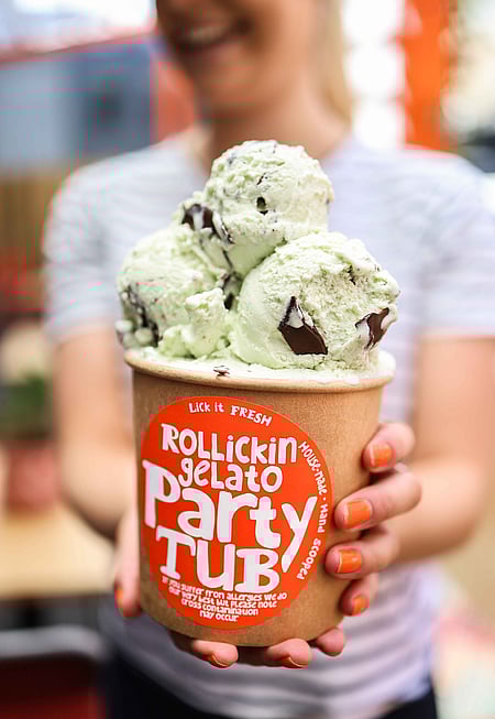 Yes! Actual real mint leaves & real NZ milk & cream whipped into a minty gelato. Look for the little bits of green leaves. And layered with our Dark Chocolate. Lick your greens for mum!