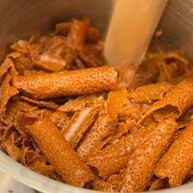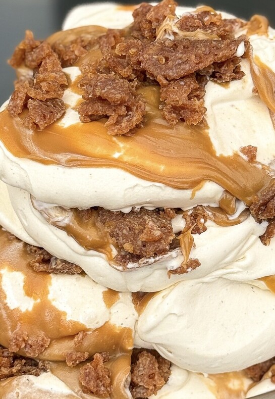 Our chefs are whipping creamy house-made Vanilla Bean gelato with layers of brandy snapping and drizzles of gooey caramel sauciness. Best job here is the brandy snapping!