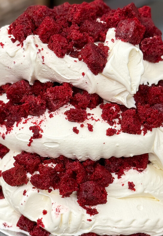 Creamy cream-cheese-icing gelato stacked with our house-baked red velvet cake chunks - soft, rich, velvety goodness in every lick.